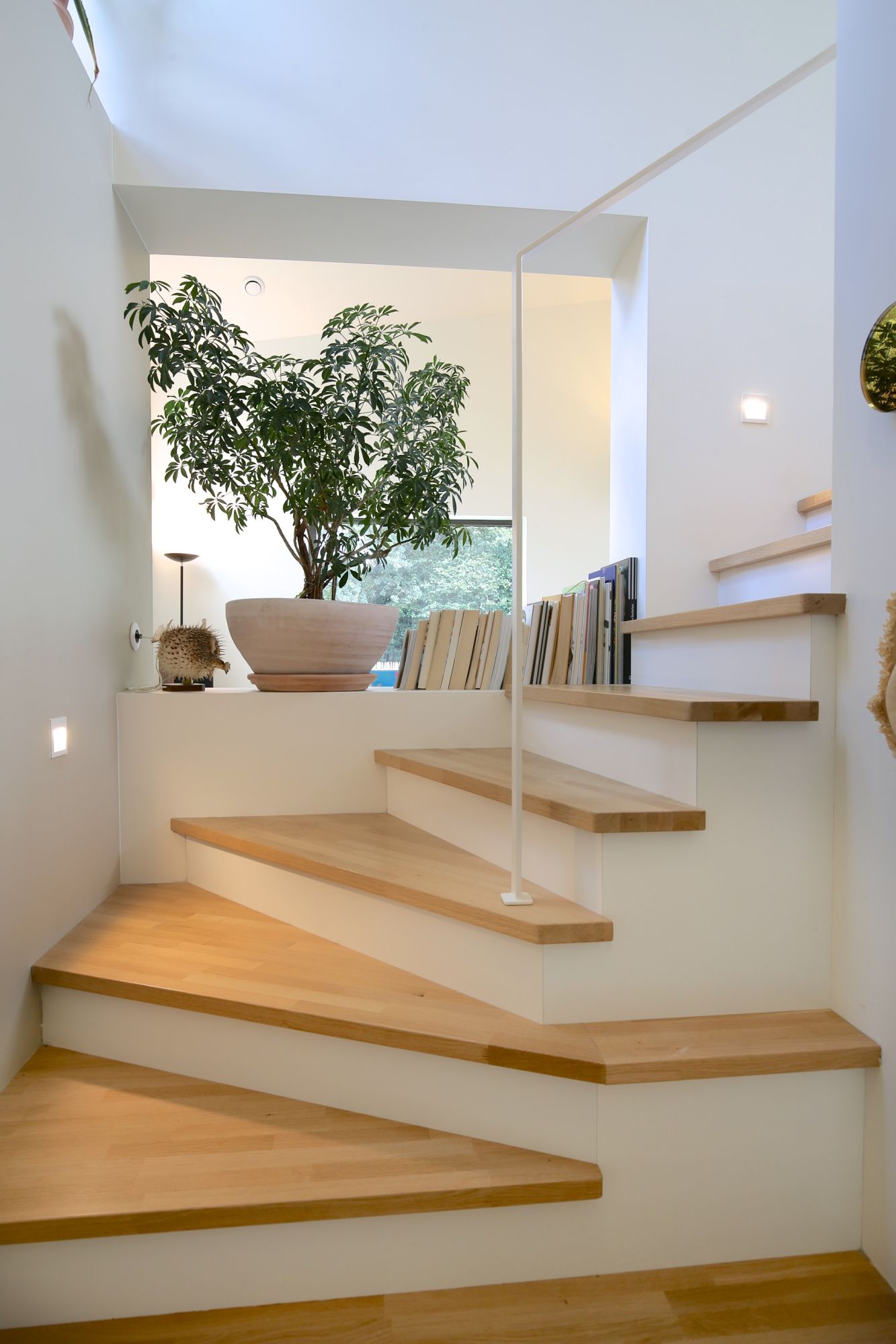 La maison est conçue pour être en symbiose avec son contexte très verdoyant. Les clients ayant repéré et acheté ce terrain en bord de Sèvre nantaise, à Rezé, ils souhaitent que leur maison soit synonyme de stabilité, de bien être, et profite pleinement du terrain et des vues vers la rivière.